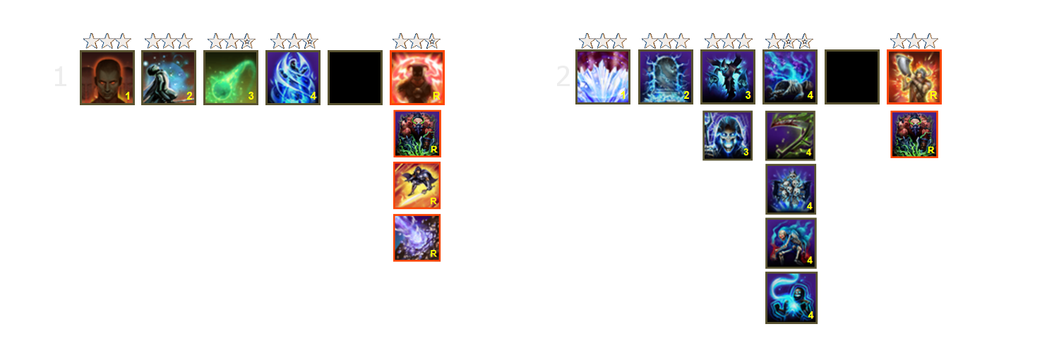 Viele der Arkanistenfähigkeiten sind nützlich bzw. müssen für bestimmte Boni gespielt werden. Oftmals sind diese so stark miteinander verstrickt, dass direkt mehrere Fähigkeiten getauscht werden, solltet ihr etwas ändern wollen. Oder aber es gibt nicht nur einen Grund warum ihr sie ausgerüstet habt und solltet zweimal überlegen, ob ihr auf den Skill xy verzichten könnt. Folgend eine mögliche Skillbarempfehlung für den Arkanisten, dabei sind Fähigkeiten mit grünen Sternen für das Crux-System relevant, können also nach der Tabelle ausgetauscht werden. Indirekt betrifft dies aber auch den Skill donnernde Rune(Skillbar 2, Slot 4) und Abhandlung der Genesung (Skillbar 2, Slot 5) wegen genannter Gründe, weshalb diese auch besonders gekennzeichnet sind. Falls ihr mit einem Schriftlehreskill zur Cruxgenerierung spielt, würde dieser den Platz auf der ersten Skillleiste im Slot 4 (derzeit Chakraschild) einnehmen.